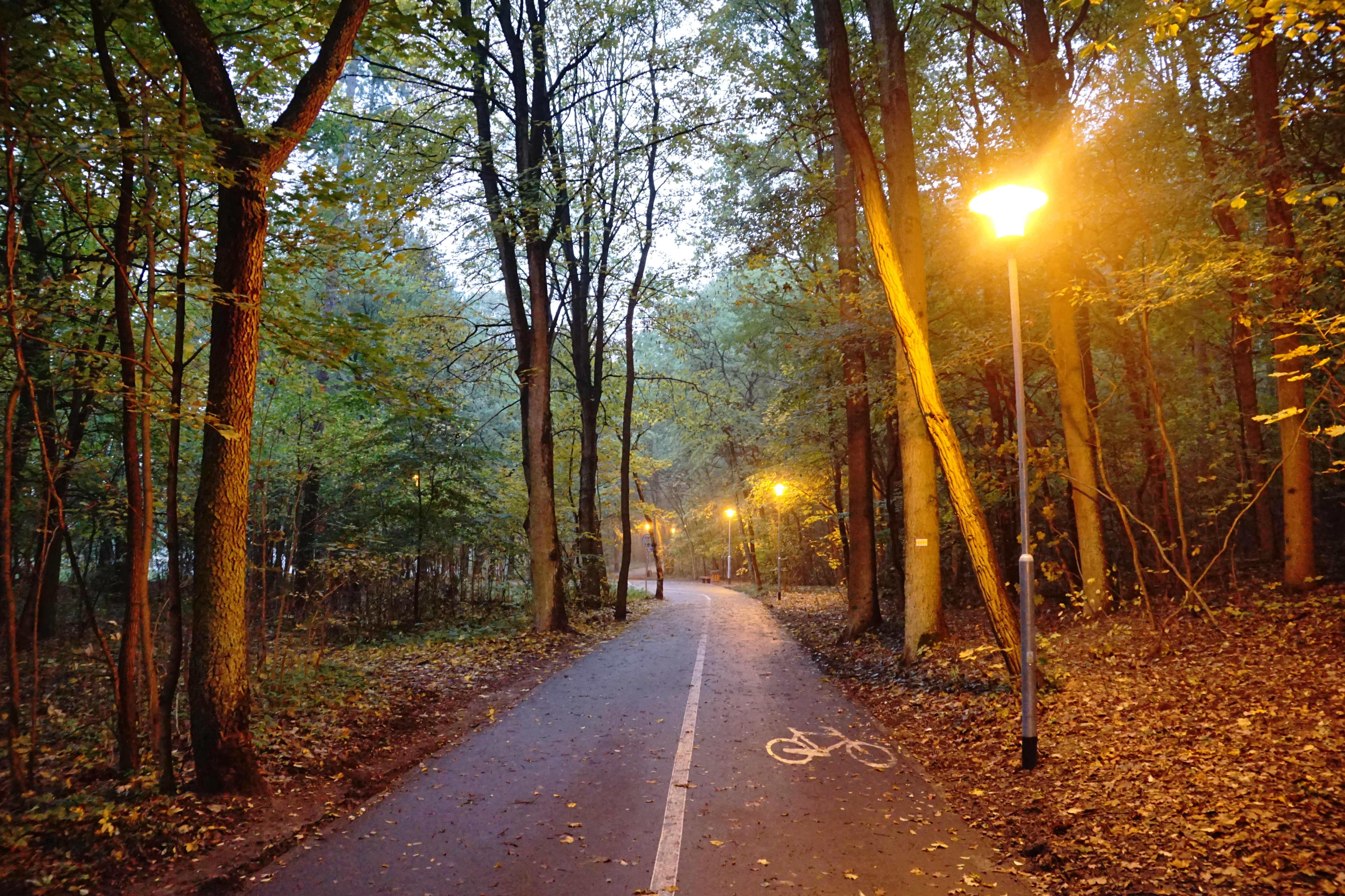 Zadanie zrealizowane. Zadanie obejmowało oświetlenie trasy w Lasku Arkońskim (łącznie 120 punktów świetlnych) wraz z montażem elementów małej architektury - ławki, kosze na śmieci oraz słupki kilometrażowe.