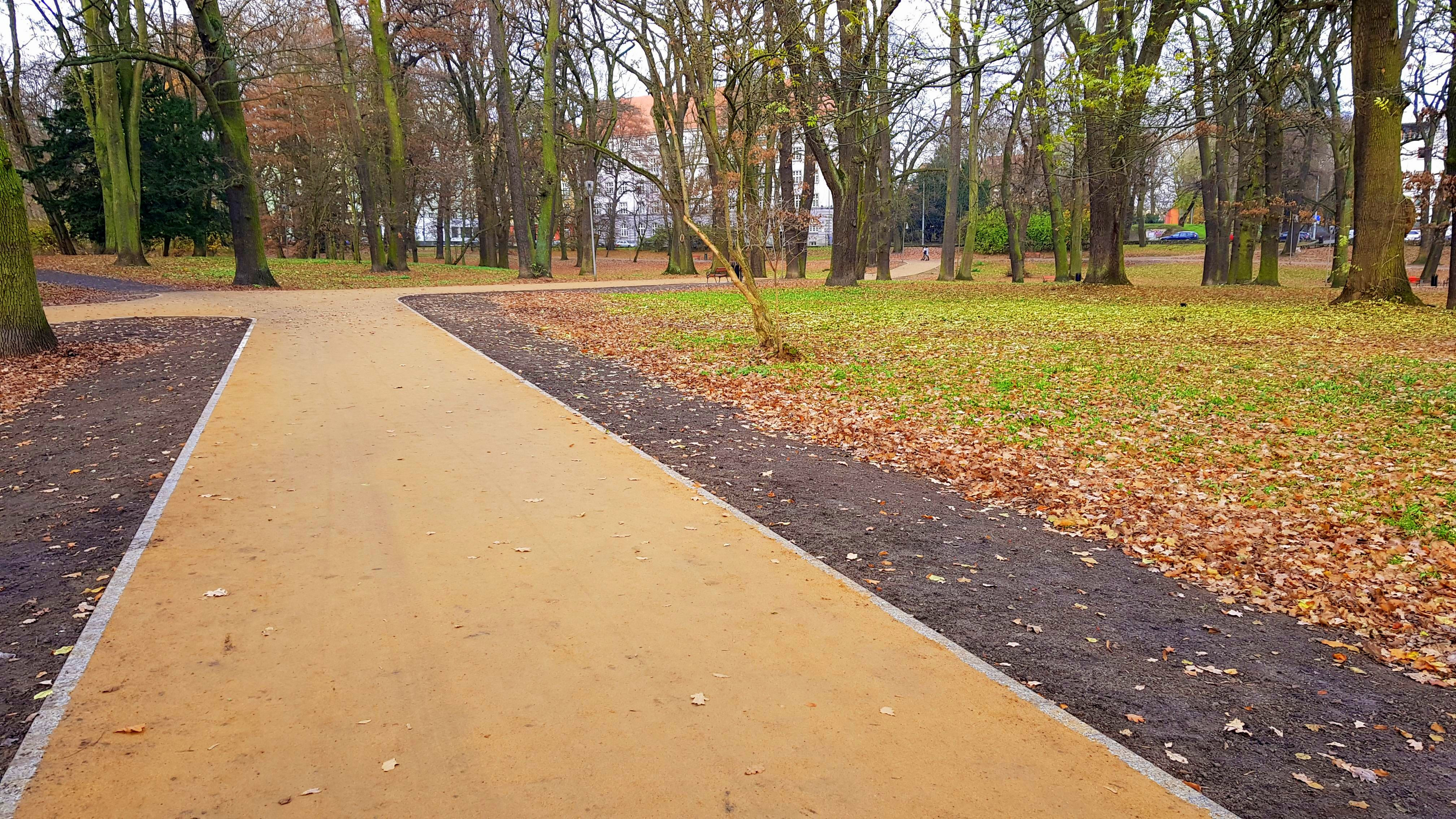 Zadanie obejmuje wymianę istniejącej, zniszczonej nawierzchni asfaltowej ścieżki parkowej biegnącej wzdłuż ul. Matejki w Szczecinie wraz z montażem nowych elementów wyposażenia terenu, takich jak ławki, kosze na śmieci.